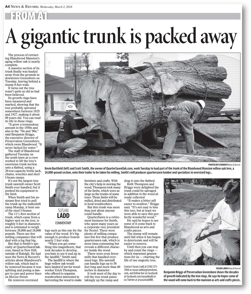 It took two excavators, one on each end, to lift what was left of the grand willow oak that once shaded part of Duke’s East Campus. The tree had been cut down to a massive, 35,000-pound log, with the stumps of former limbs jutting out like the Venus de Milo’s missing arms.