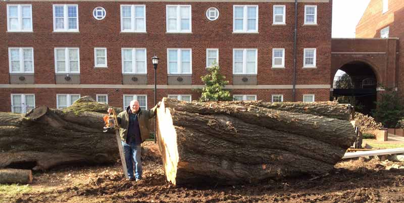 Custom slabbing a large red oak log for a local customer