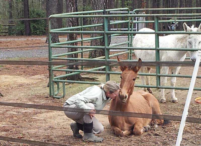 Laureen with Violet, a mustang mule which we rescued from the BLM pens in Nevada.