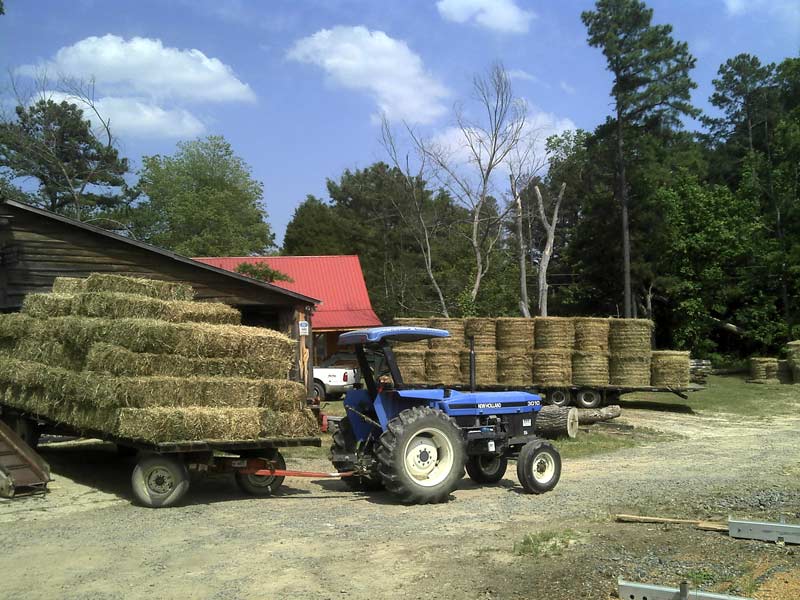 We have been producing equestrian and bovine grade hay since 2001.  Our spring cuttings are usually a mix of fescue, orchard, clover and rye grass, and we do not sell equine hay that has been rewetted after cutting.  Fall cuttings typically are a mix of fescue, orchard and pasture grasses.  Please contact us to discuss your hay needs!
